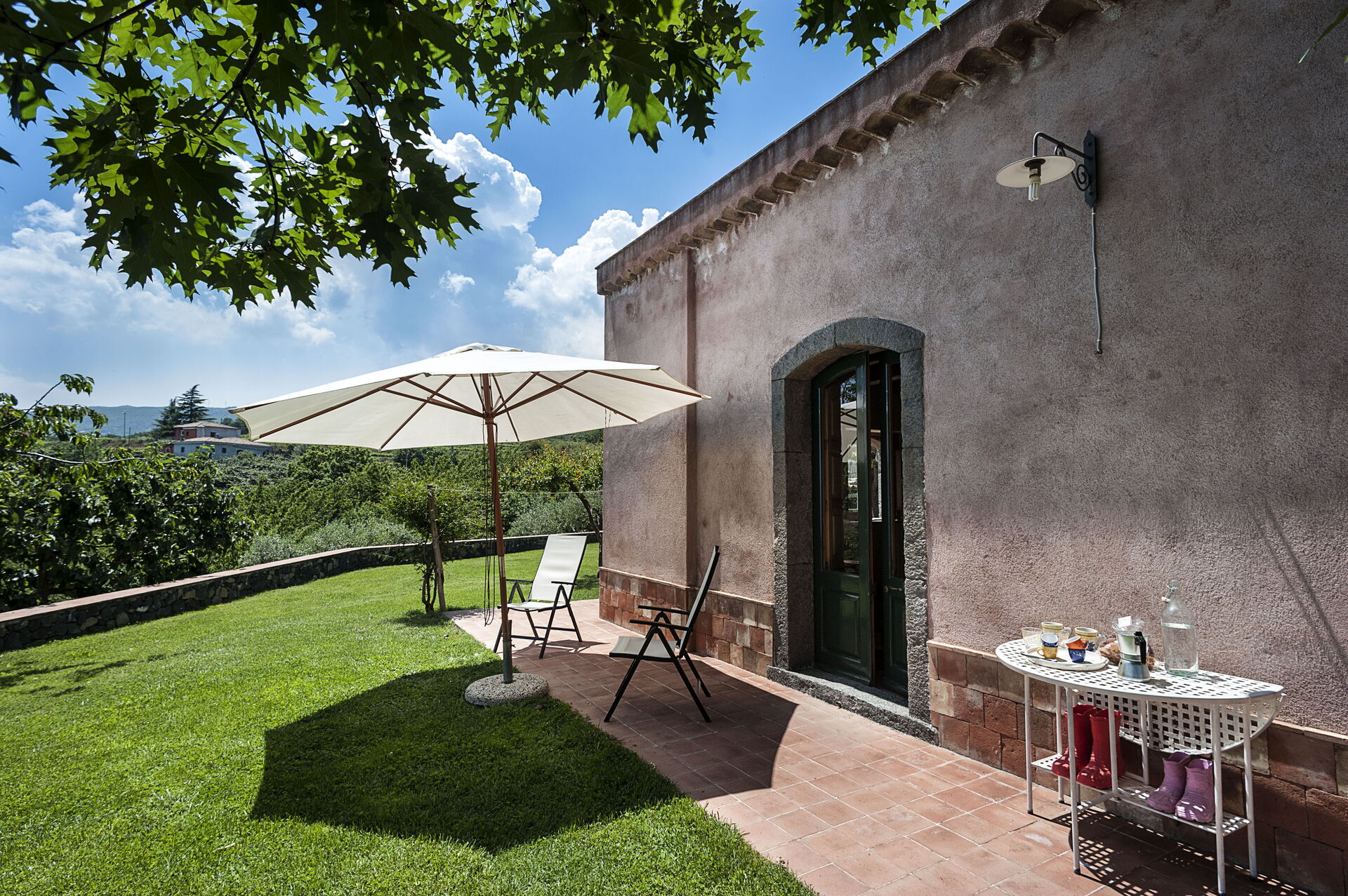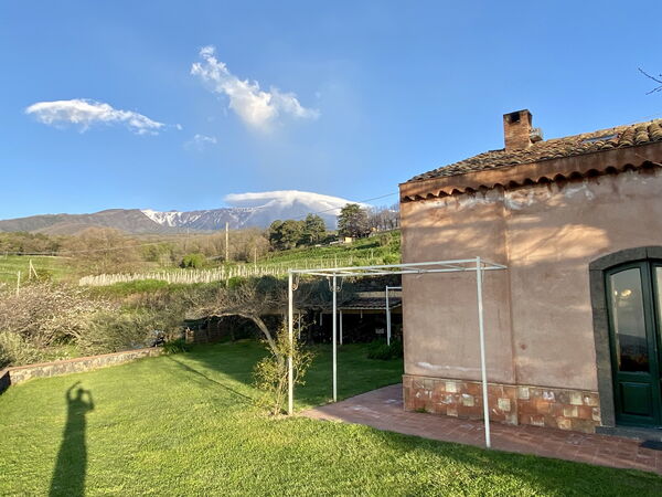 Casa Rosa is a renovated farmhouse amidst a beautiful natural environment: 2 hectares of vineyards, cherry trees and a wooded valley ideal for your summer picnic. On one side you can admire the Mount Etna and on the other side the coast: a landscape of 150 km that stretches until Taormina, the coast of Calabria in the far north and the province of Syracuse in the south.