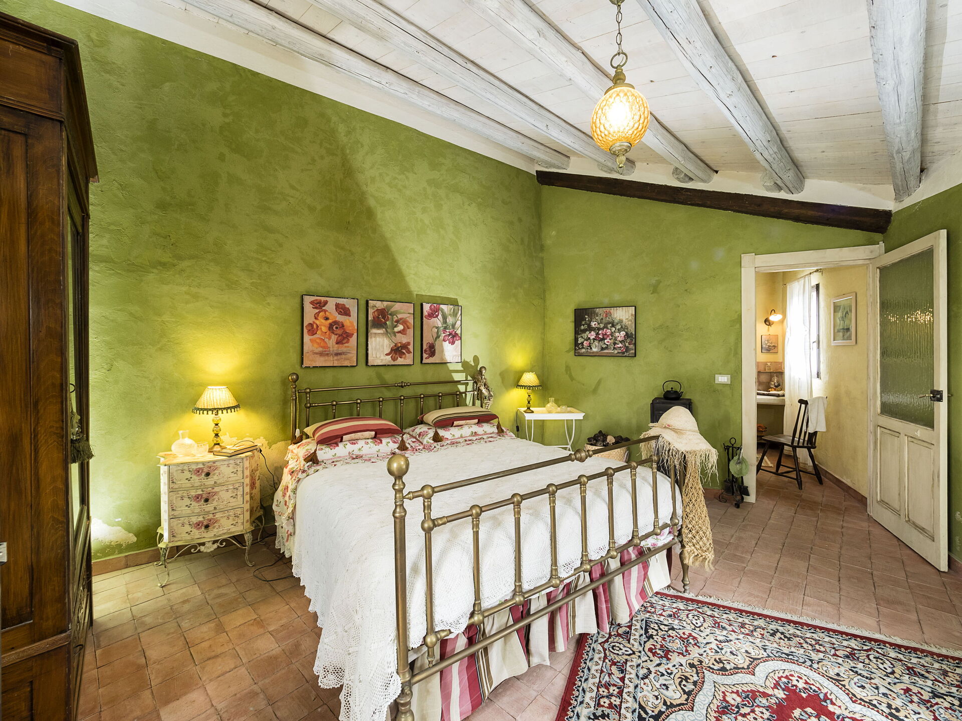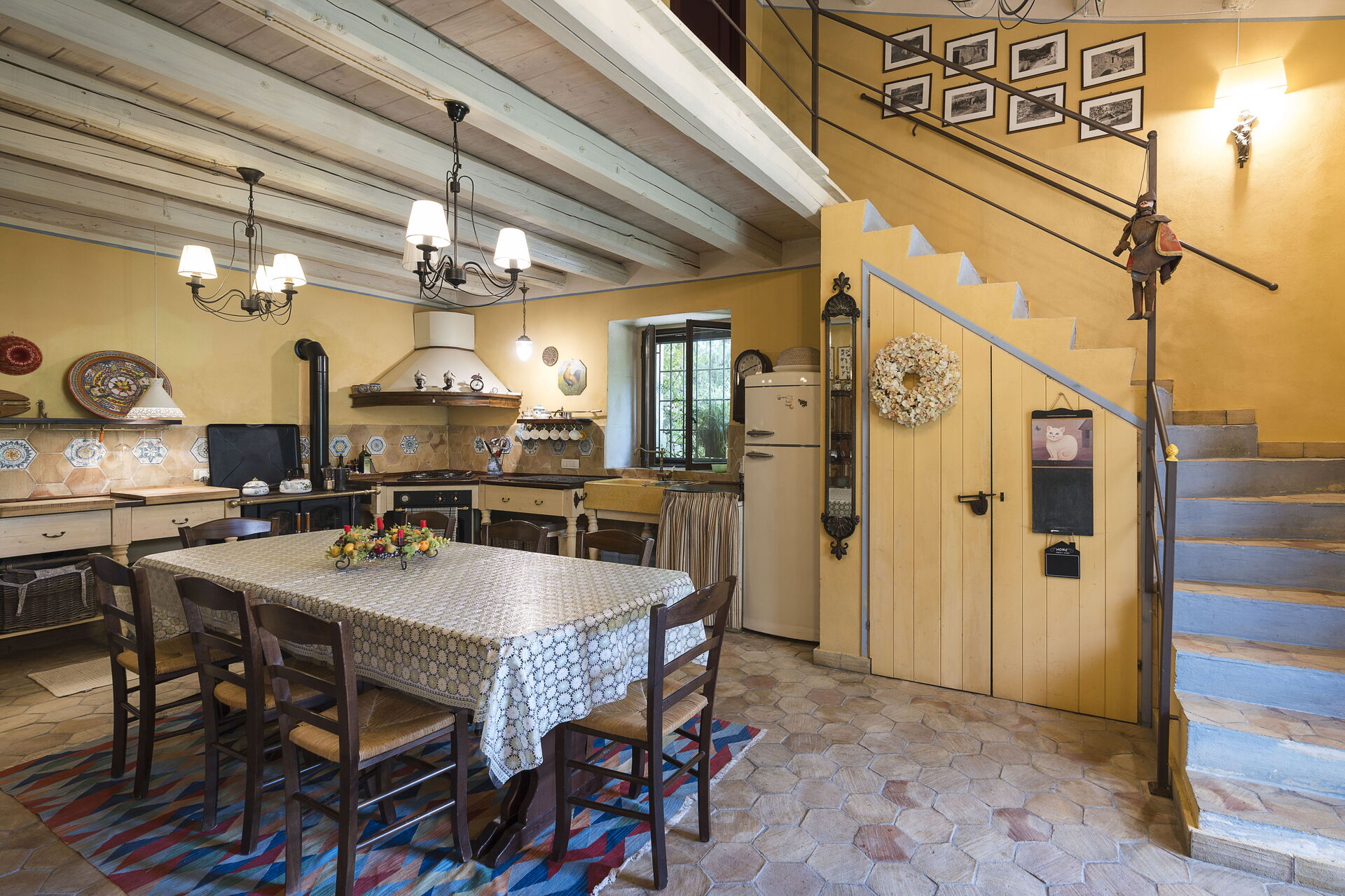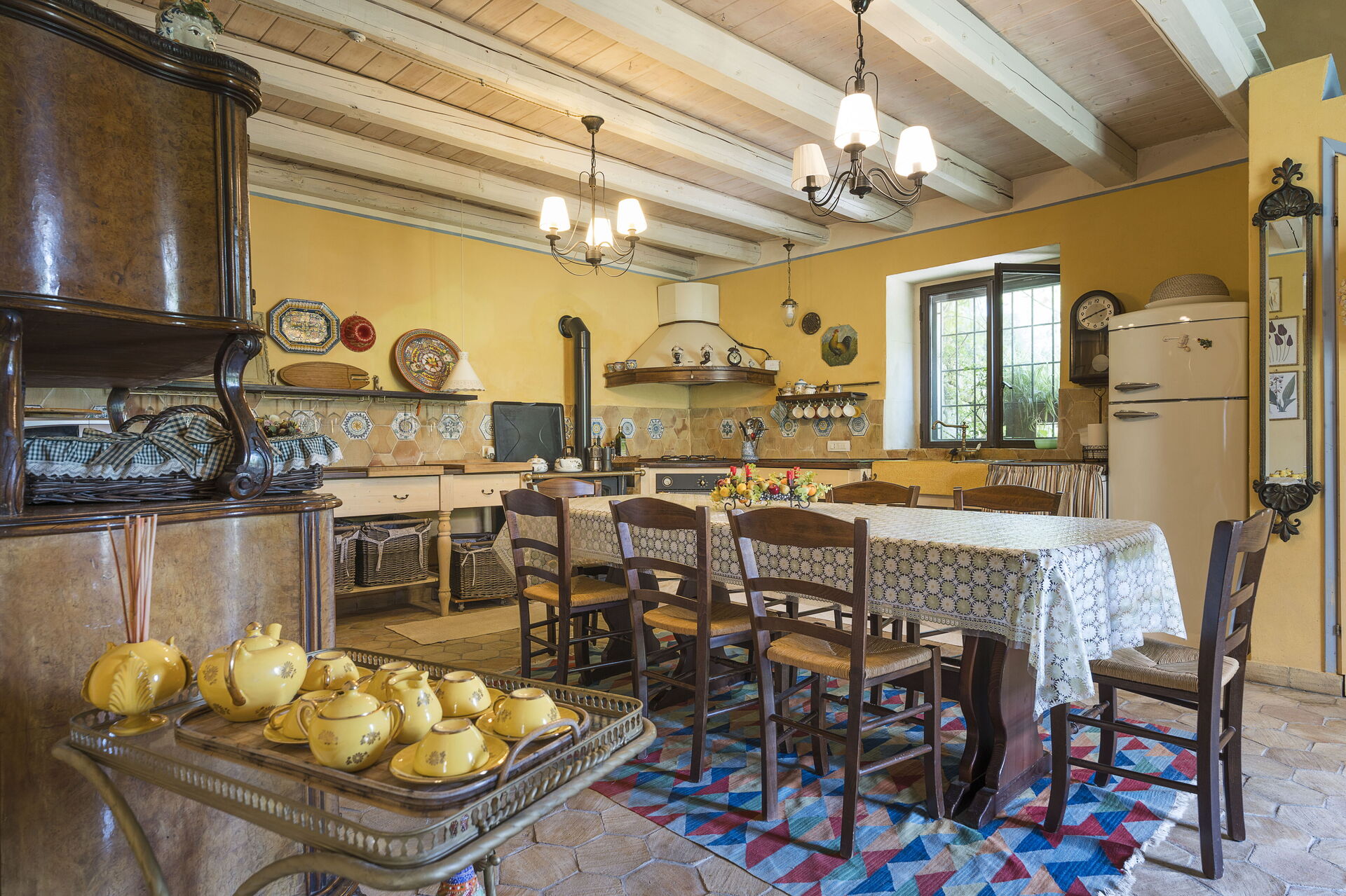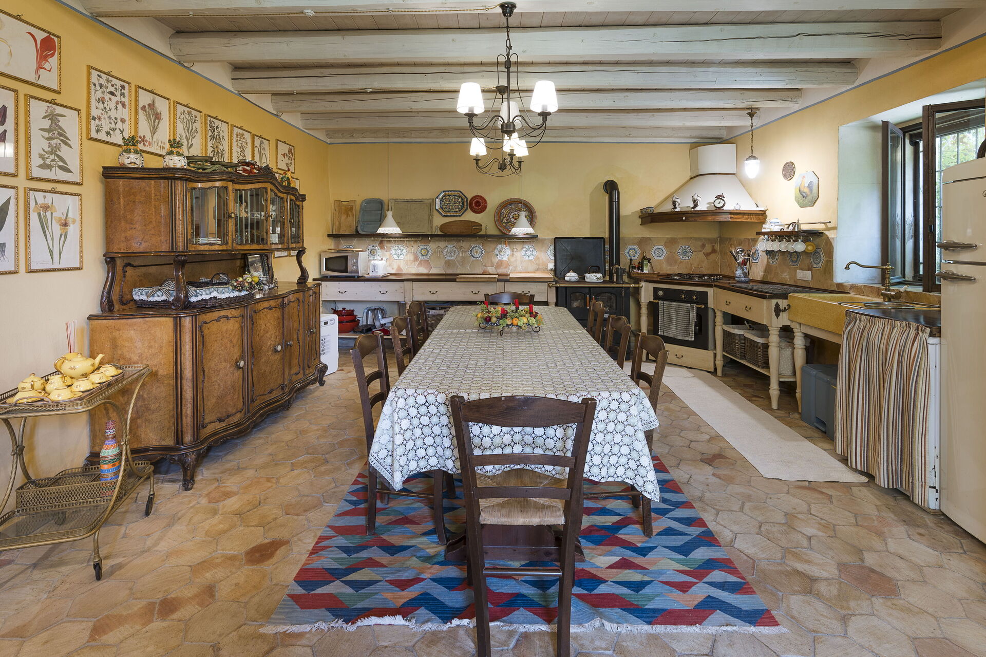 The main building has three eclectically elegant double bedrooms, and one room with two single beds. There are also two luxury bathrooms, one for each floor. A spacious dining room with a well-equipped kitchen (including a dishwasher) will be the perfect frame for all your dinners unless, of course, you cannot get enough of the stunning views of the surroundings and you prefer to enjoy your meal outdoor. The dépendance consists of a double bedroom and a bathroom and it can be a romantic hideout for a couple that wants even more privacy. There is a brand new bathroom and a changing room next to the pool.