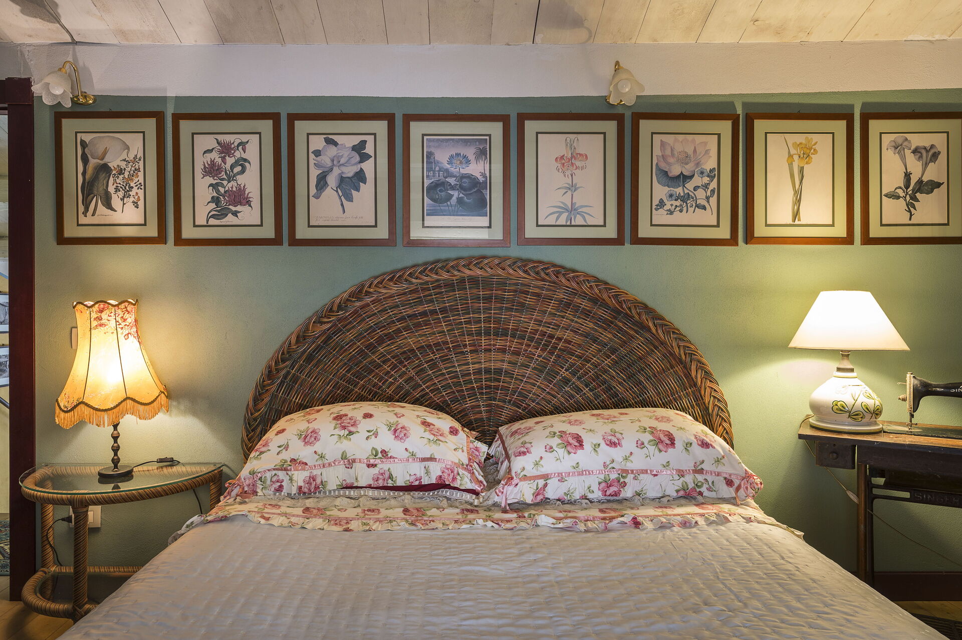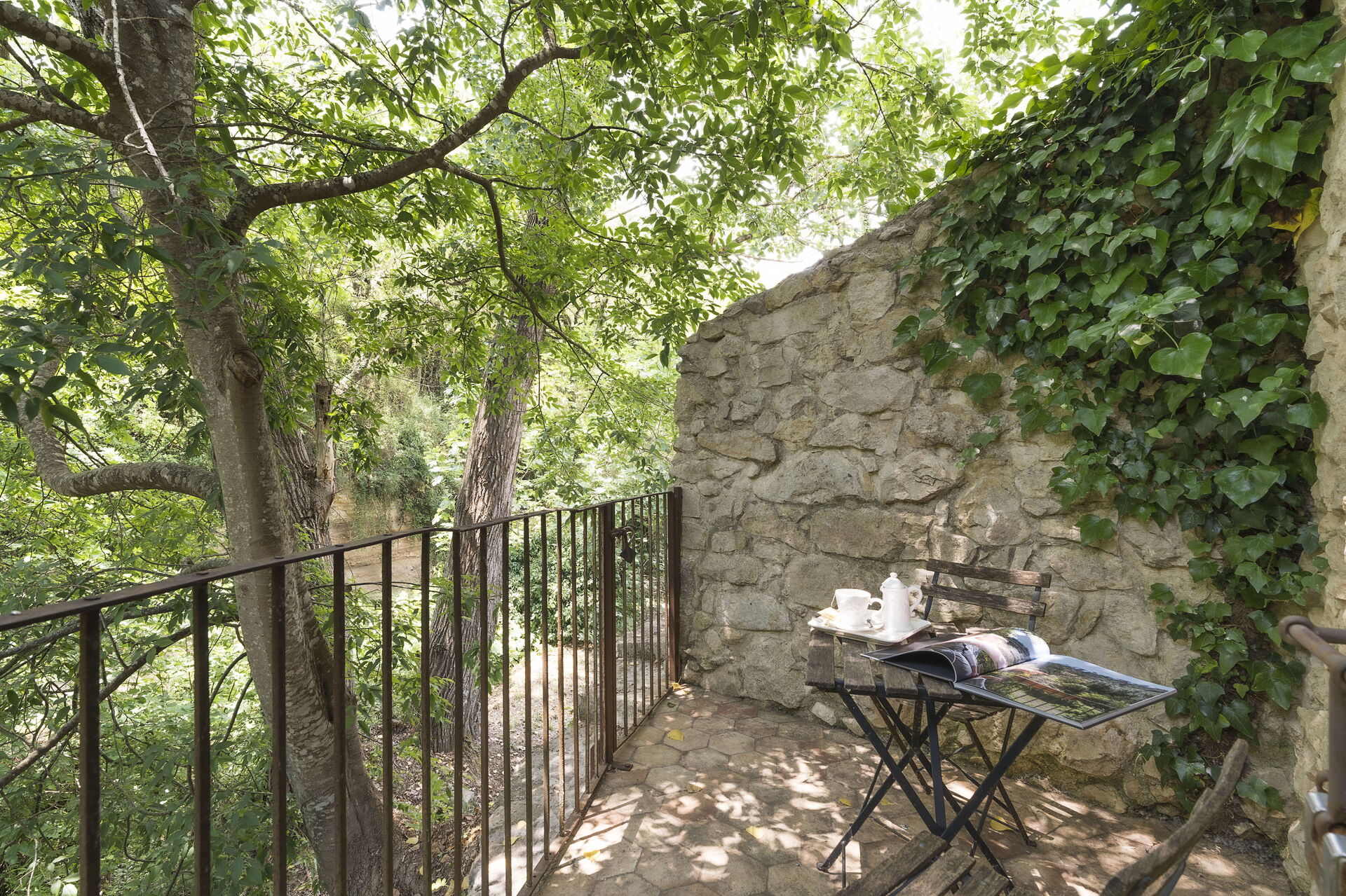 A curvy country road bordered with low white walls leads to Villa Molinum that consists of a white main building of 150 m2 and a pink dépendance of 40 m2. The entrance for both units is a green patio overlooking a forest and the creek where you might even spot one of the owner’s horses running freely.