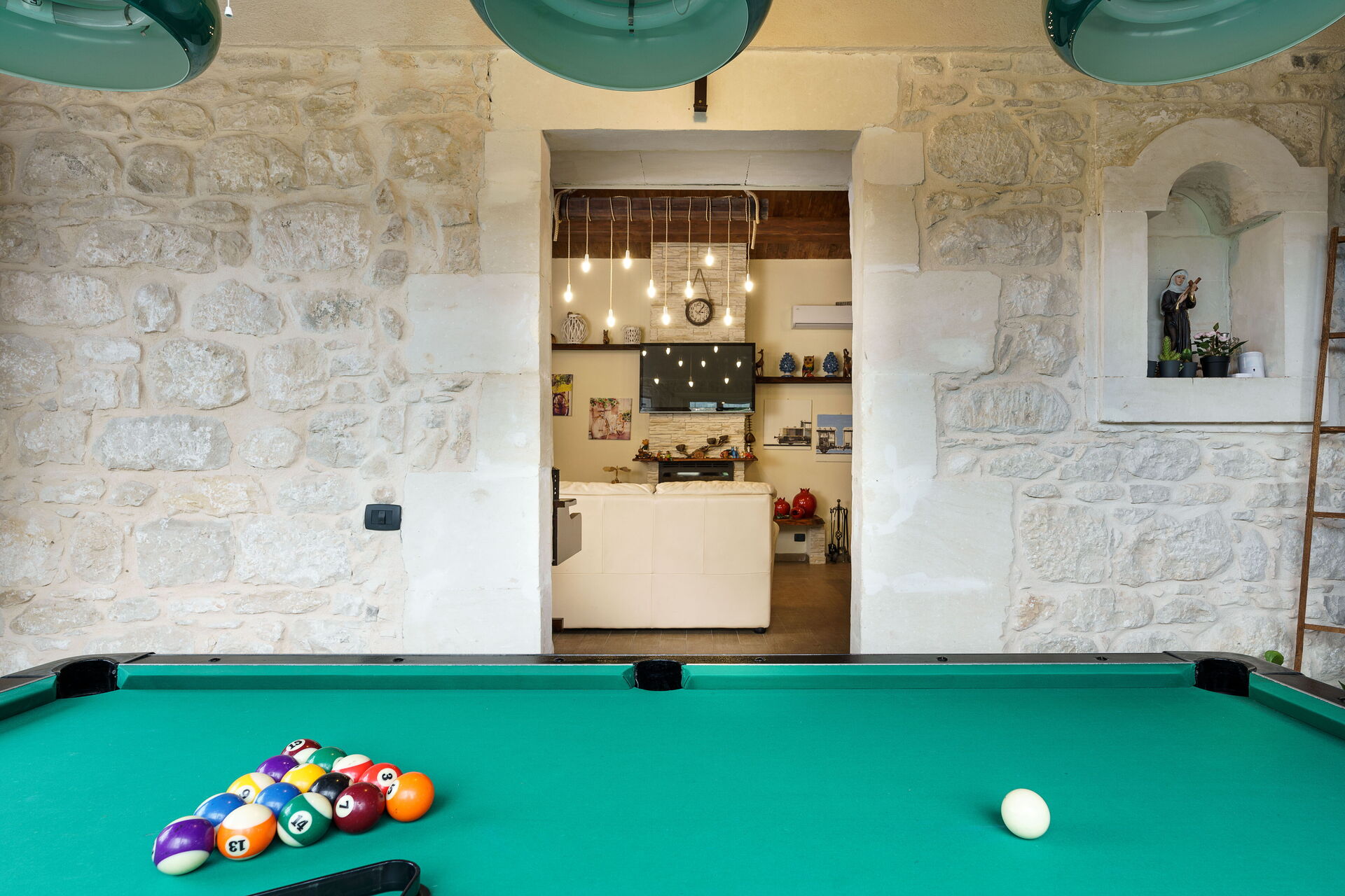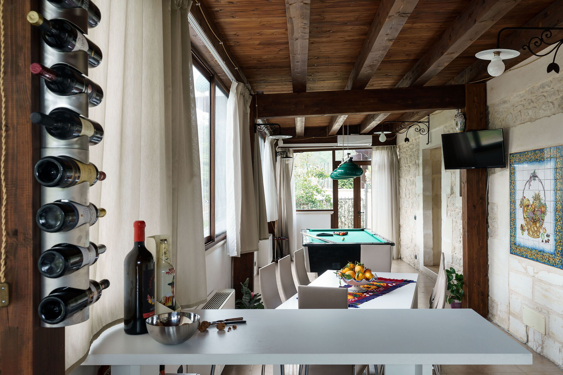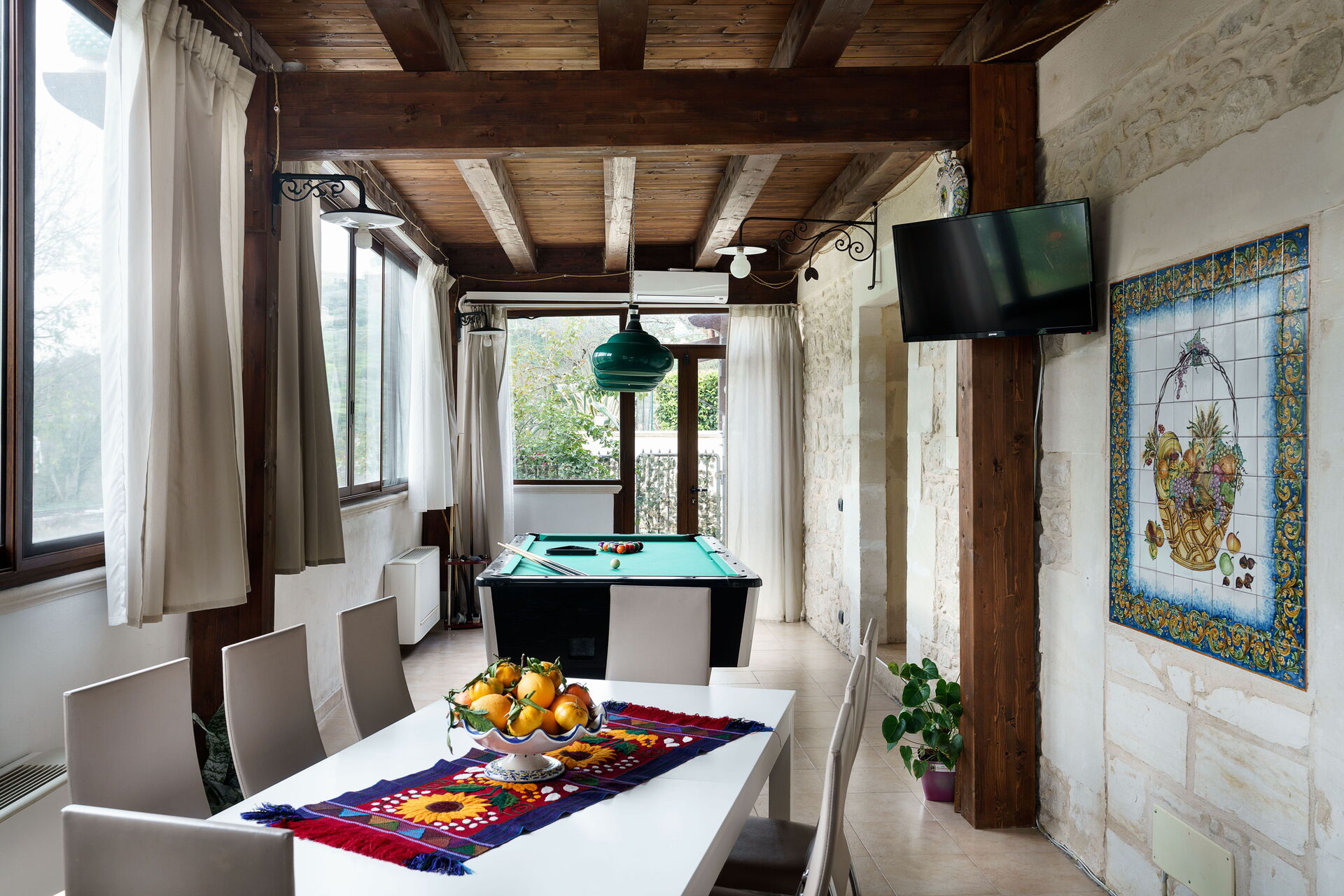 Kitchen, dining, pool table space lovely and light and very sociable. Kitchen well equipped. Pool great too, with table tennis table as well. Lots of fun. Bedrooms and bathrooms are basic but for the price you pay are adequate. Giulia is a great host. Very responsive, helpful and friendly. We loved the location below Ragusa Ibla, with a fun 15 minute walk along the road then up the steep steps to the spectacular town.