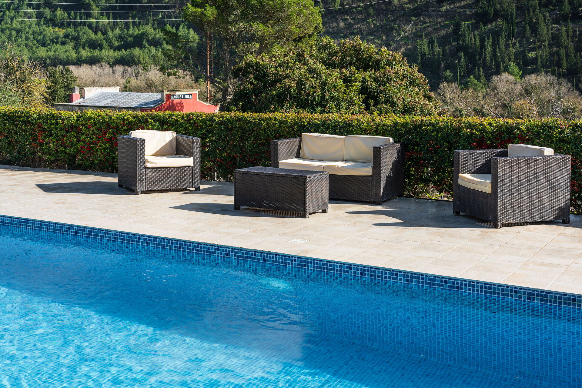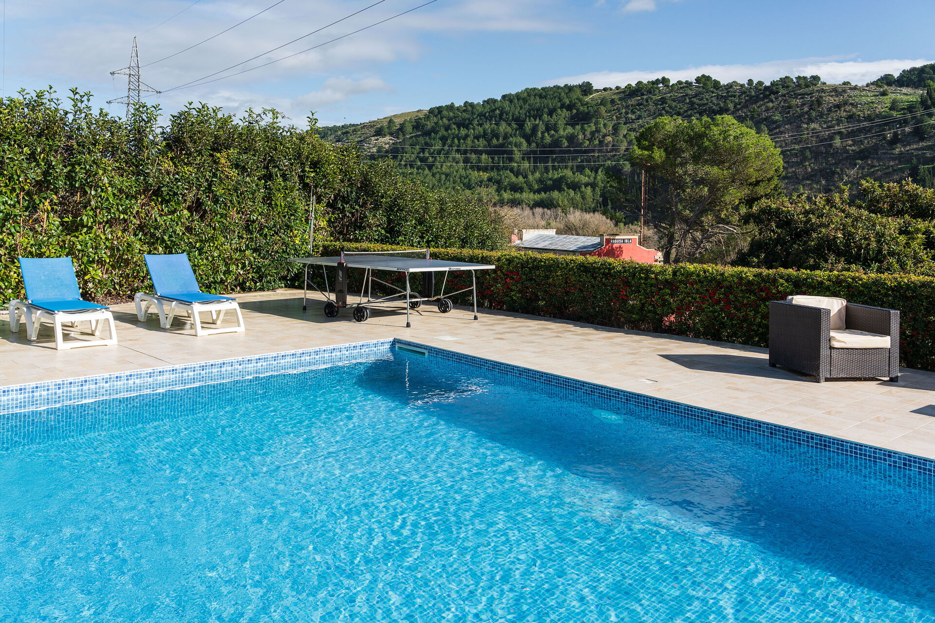 The villa is pretty spacious and it is kept very clean. The kitchen is well equipped and there is even a pool table! We appreciated the private outdoor pool in particular and the air conditioning worked well inside. We had a warm welcome and everything was well organised.It is a short drive from Ragusa Ibla which is a lovely place to go in the evening. The local restaurant only 400 yards away La Capinera is excellent.Opposite the villa is the (not busy) Ragusa Ibla train station - perfect for train spotters. The road outside the property can be a little bit busy at times but the villa was undisturbed and the views are pretty good. There is excellent security at the property. All in all, it worked well for our stay and the link with the Beach Club at Donnalucata was much appreciated.