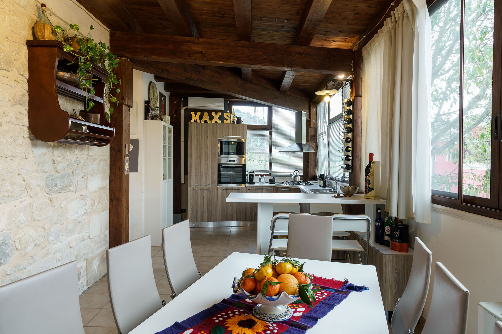 Casa Michela has 4 bedrooms, 2 bathrooms, a bright living area with kitchen, a living room with fireplace and sofa bed, and a beautiful panoramic terrace for outdoor dining. In addition, the house is equipped with everything needed for a comfortable and never boring holiday. The list includes dishwasher, washing machine, WiFi, barbecue, air conditioning, private pool, pool table, piano, table tennis and a basketball hoop.