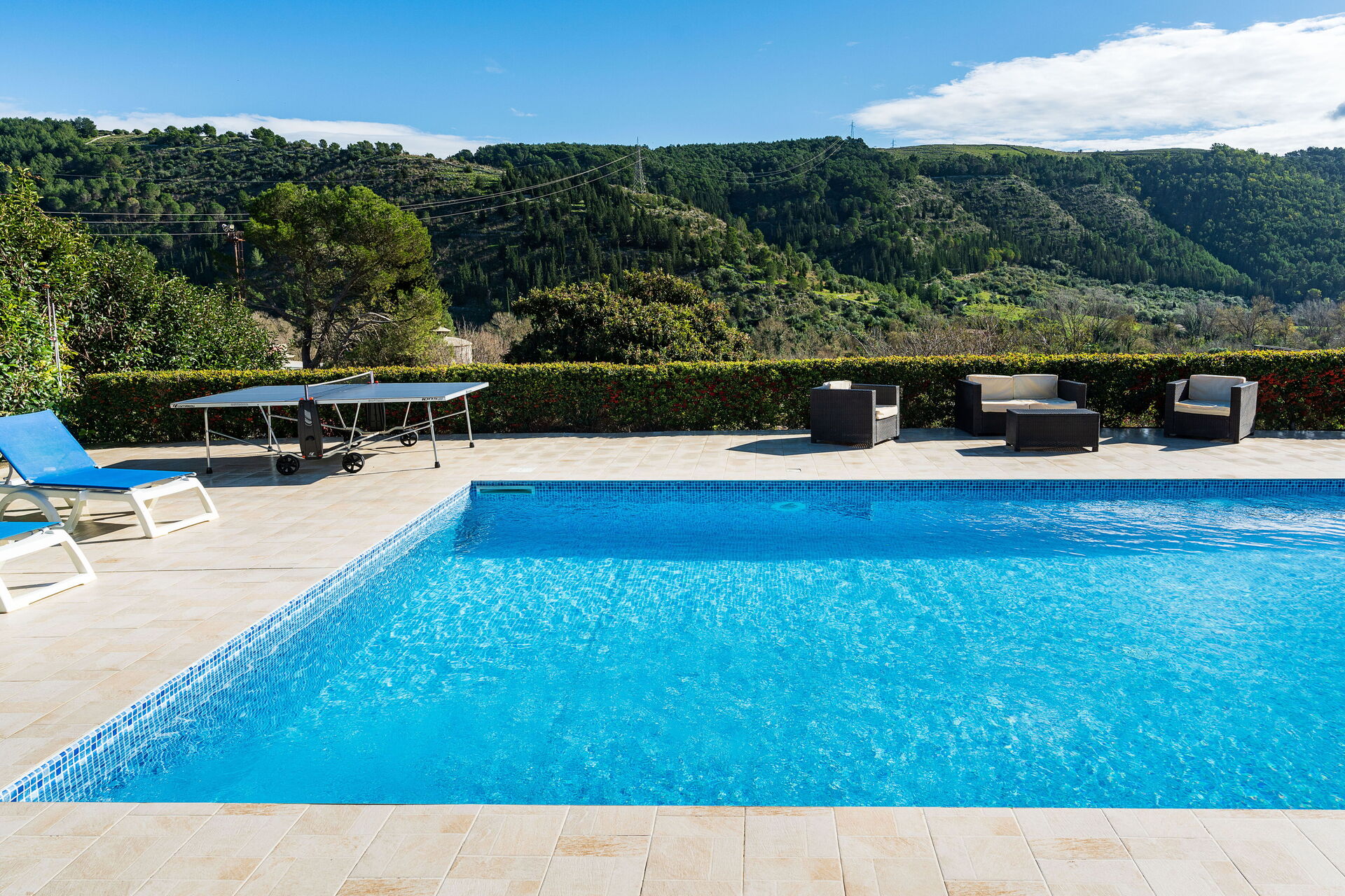Spacious villa with great amenities. Really nice pool area with a great view. Kids loved the pool table and table tennis. A short walk (up quite a few steps) to the stunning Ragusa Ibla. Great place for a family holiday